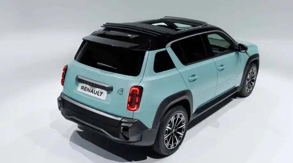 车身侧面,拼色车身设计是一大亮点,不同颜色的搭配碰撞出独特的视觉效果。C柱加入的小巧设计,营造出层叠排序的视觉效果,丰富了车身的层次感,展现出设计师的独特匠心。值得一提的是,雷诺4 E-Tech并没有采用当下流行的隐藏式或是半隐藏式门把手,而是保留了传统拉手式设计,这一细节不仅方便使用,还增添了几分复古风味。此外,它还提供可折叠开启软顶天窗的选装配置,让驾驶者在享受阳光和新鲜空气的同时,也能感受到对经典车型的致敬。